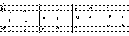 A scale is a sequence of notes which starts on a given note name and moves up or down in a consistent pattern until it reaches the same note name. (C to C)