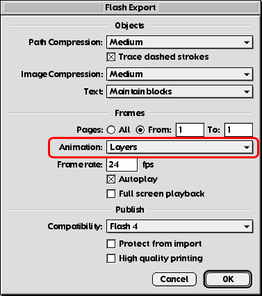 Select the SWF format. Go into the Options and make sure